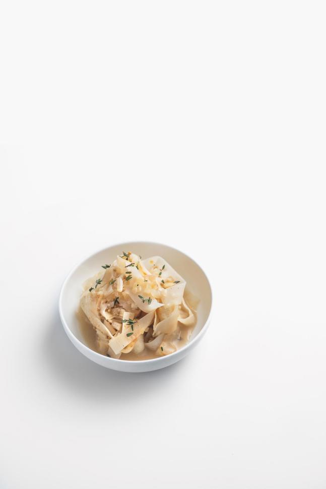Darauf basiert unser Menü: Wir nehmen uns für die Vorspeise, für die Hauptspeise und fürs Dessert jeweils ein Lebensmittel wie den Sellerie oder ein Thema wie beispielsweise Sommerkräuter oder Hülsenfrüchte vor und kreieren darum herum dann unsere Tavolata-Teller. Ich finde, dass dieses Vorgehen die Arbeit spannend macht – und ausserdem auch etwas einfacher. Es hilft, sich in der Konzeption einzuschränken.